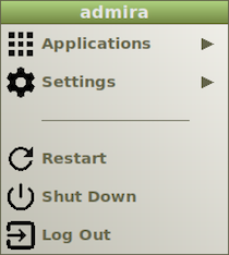 Fisrt right-click the mouse button to see the main admira Desktop Menu whose looks like this: