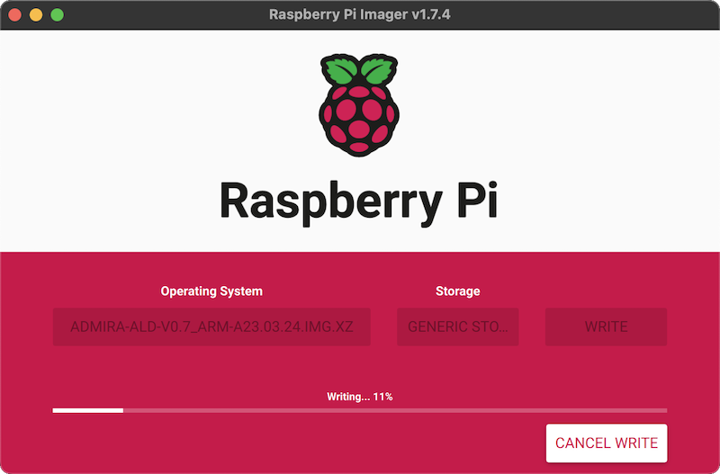 If you are planning to use a Raspberry Pi, the easiest way to install the Admira Linux Distribution is using the Raspberry Pi Imager with one of our custom images. We have the following flavours: