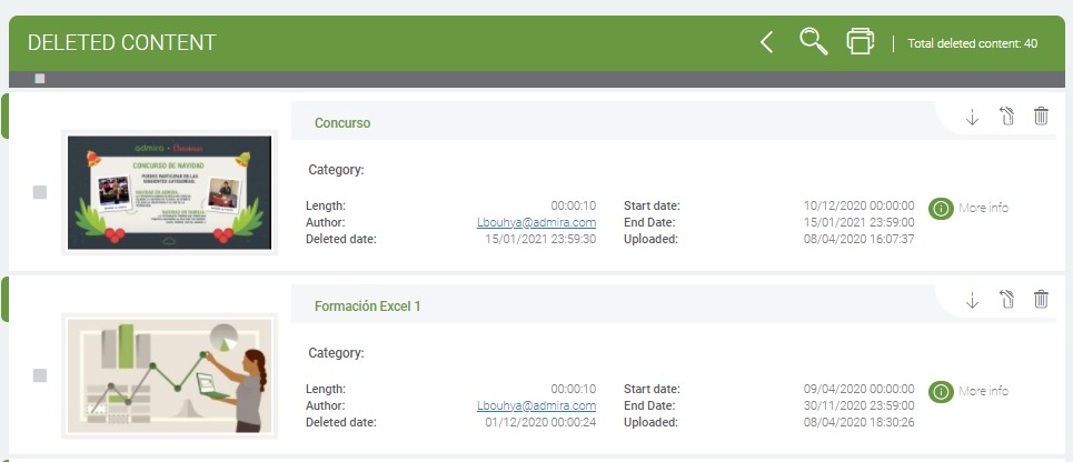 In this section we can see all the contents that have been deleted or expired.